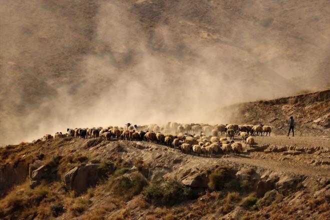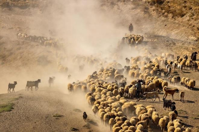 Bitlis'in Tatvan ilçesinde hayvancılık yapan köylüler, küçükbaş hayvanlarını otlatmak için birlikte kilometrelerce yol kat etmek zorunda kalıyor.