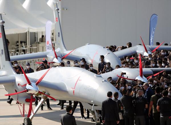 Cumhurbaşkanı Erdoğan, tören alanına gelmeden önce pistte hazır bekletilen iki Akıncı TİHA'yı imzaladı.