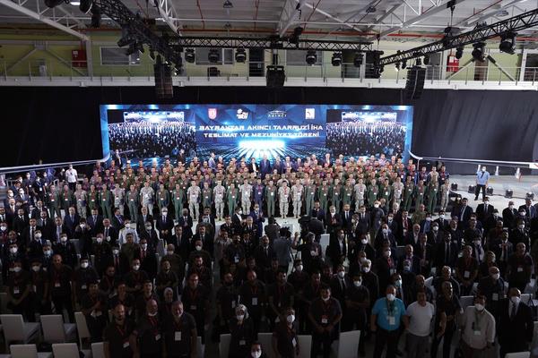 Cumhurbaşkanı Recep Tayyip Erdoğan, Çorlu Hava Meydan Komutanlığı Akıncı Uçuş Eğitim ve Test Merkezi'nde, Bayraktar Akıncı Taarruzi İnsansız Hava Aracı (TİHA) Teslimat ve Kurs Bitirme Törenine katıldı.