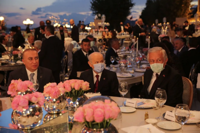 Düğünde Fuat Oktay, Hulusi Akar ve Bahçeli'nin birlikte bulunduğu masada, Aydın Doğan da MHP lideri ile AK Parti Genel Başkanvekili Binali Yıldırım'ın arasında oturdu.