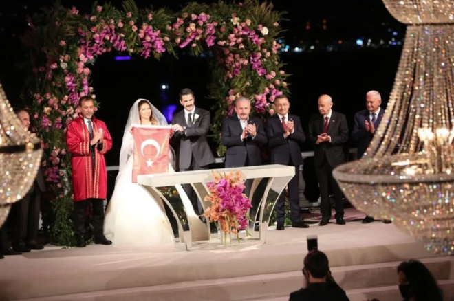 Türkiye Büyük Millet Meclisi Başkanvekili Celal Adan'ın oğlu Sinan Buğra Adan ile Ceyda Öztürk?ün düğün yemeğine iş ve siyaset dünyasının önde gelen isimleri katıldı. Çırağan Sarayı'nda düzenlenen düğünün fotoğrafları, MHP'nin resmi sosyal medya hesaplarından da paylaşıldı.