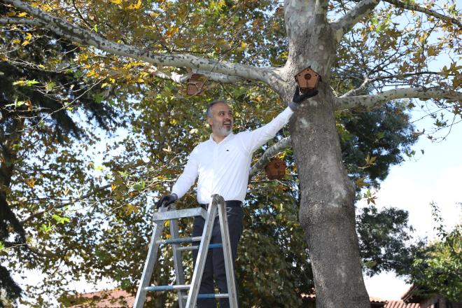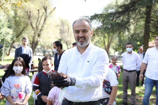 Yeni neslin daha çevreci, doğaya ve hayvanlara karşı duyarlı olmaları amacıyla farklı eğitim çalışmalarına imza atan Bursa Büyükşehir Belediyesi, küçük hayvan severleri 4 Ekim Hayvanları Koruma Günü?nde Bursa Hayvanat Bahçesi?nde bir araya getirdi. Büyükşehir Belediye Başkanı Alinur Aktaş?ın da katıldığı etkinlikte, Başkan Aktaş ve çocuklar ahşaptan kuş yuvası yaptı. Başkan Aktaş, yapılan ahşap kuş yuvalarını merdivene çıkarak ağaçlara asarken, etkinlikte ayrıca doğada yaralı olarak bulunan ve tedavileri Büyükşehir Belediyesi tarafından yapılan güvercinler de doğaya salındı.