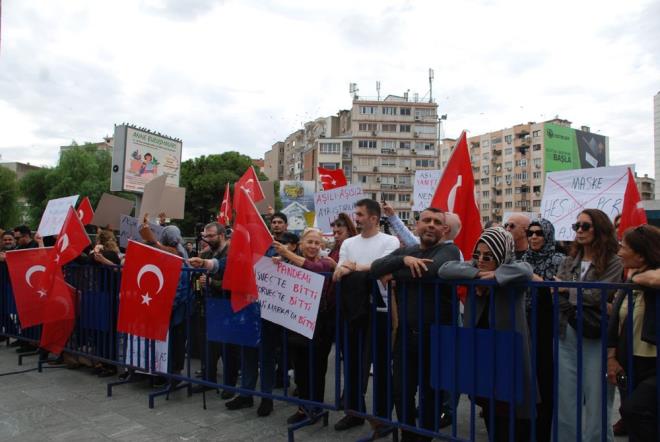 İzmir'de aşı karşıtları "Büyük Uyanış" adı altında miting düzenledi.