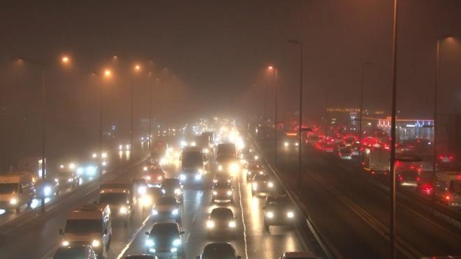 İstanbul'da, haftanın son günündeki mesai bitiminin ardından etkili olan sisle birlikte birçok noktada trafik yoğunluğu oluştu, şehir hatları seferleri iptal edildi.