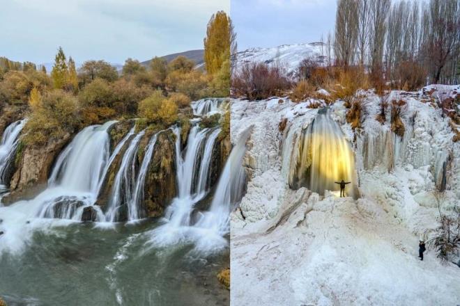 Kışın çekilen fotoğrafların aynı noktadan çekilmiş sonbahar halleri şaşırttı