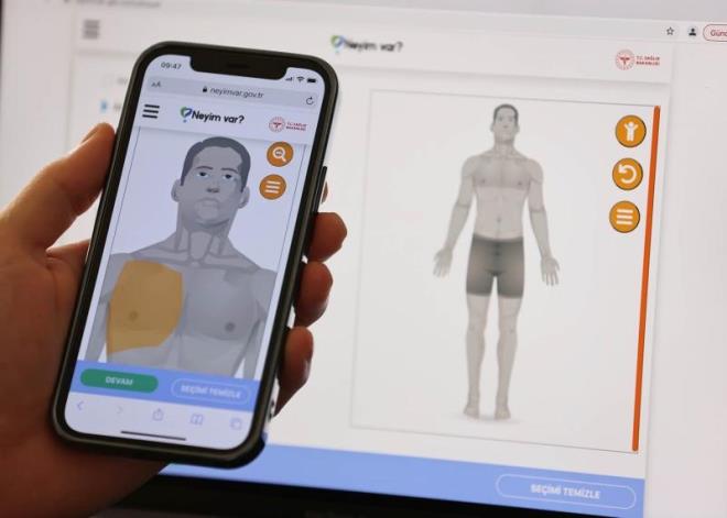 Neyim Var uygulaması, girdiğiniz şikayetlerinizi yapay zeka ile değerlendirerek sizin şikayetinizle ilgili tanı tahminlerinde bulunarak ve doğru polikliniğe yönlendirilmenizi sağlar.