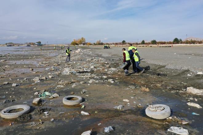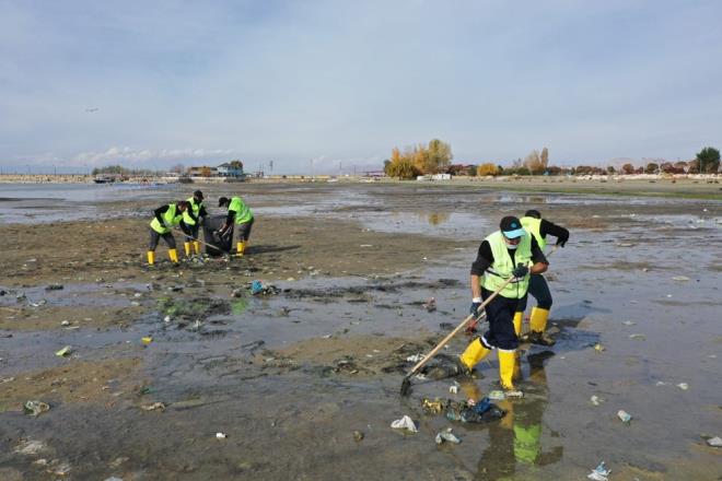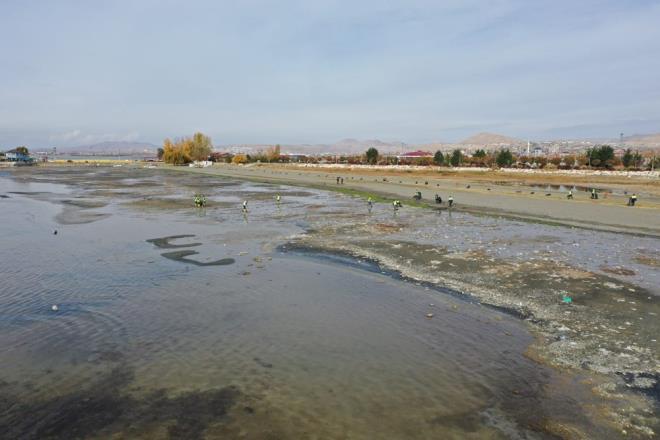 Van'ın İpekyolu Belediyesi, Van Gölü?nde son yıllarda yağışların azlığı nedeniyle çekilen alanlarda ortaya çıkan atıkları topladı. Toplanan 40 ton çöp, geri dönüşüme kazandırıldı.