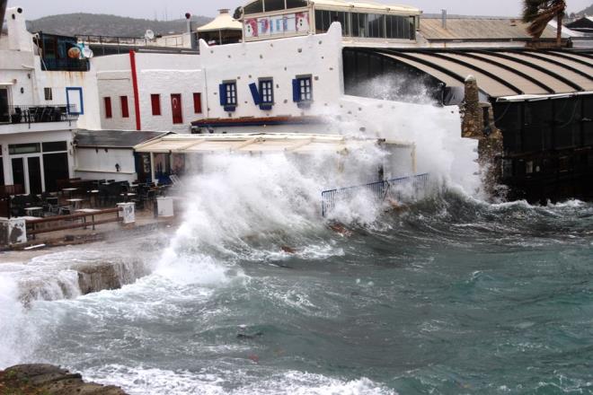 Bodrum?da da sabah saatlerinde başlayan lodos, hayatı olumsuz yönde etkiledi. Sabah saatlerinden itibaren etkisini arttıran fırtına, plaj ve iş yerlerini vurdu. Sahilde işletmesi bulunan esnaf, dükkanlarına yığdıkları kum torbalarıyla deniz suyunun içeri girmesini engellemeye çalıştı.