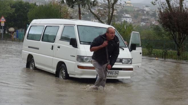 Mersin Silifke'de dün akşam başlayan ve sabah saatlerinde etkisini artıran sağanak nedeniyle bazı yollar, iş yerleri ve evler su altında kaldı.