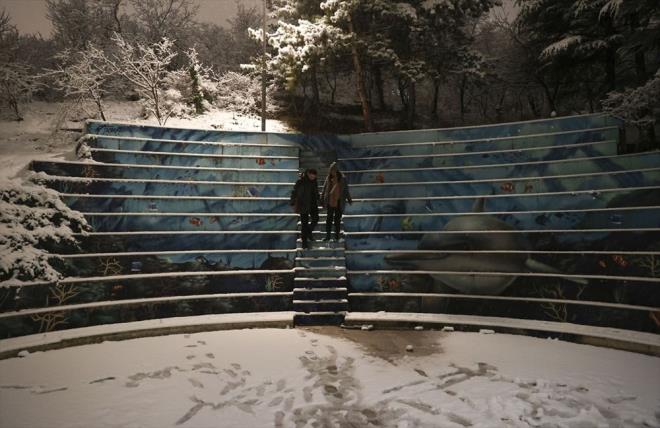 Bazı vatandaşlar, Botanik Park'ta yürüyerek kar yağışının tadını çıkardı.