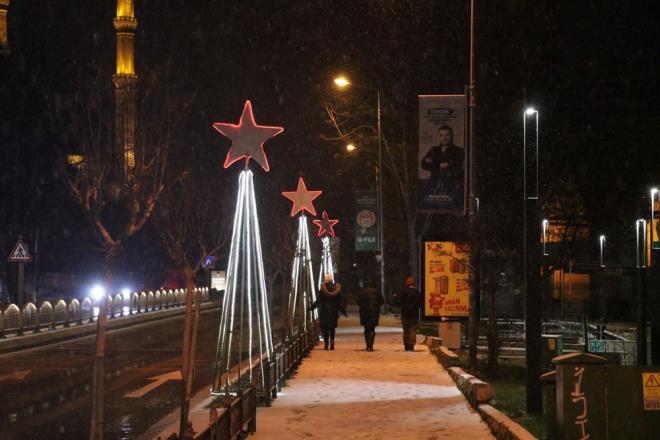 Hava sıcaklığının sıfır derece ölçüldüğü kentte kar yağışının süreceği tahmin ediliyor.