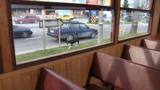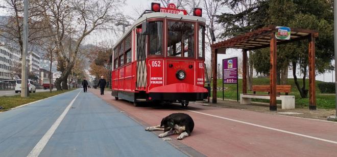 Ordu'nun Altınordu ilçesinde sokak köpeği, Atatürk Bulvarı'nda Rıhtım ile Teleferik alt istasyonu arasında sefer yapan nostaljik elektrikli tramvayı takip ediyor.