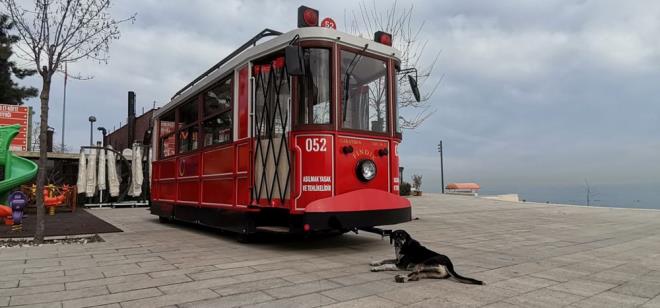 'Kara Tren? adı verilen ve zil sesiyle hareket eden tramvaya eşlik eden köpek, sokak köpeklerini yanaştırmadığı tramvayın yanında sabahlıyor. Vatman ekibi de maskotları haline gelen köpeği besleyip, bakımını yapıyor.