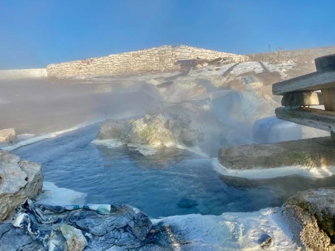 Eksi 30 dereceyi bulan dondurucu soğuklara rağmen kaplıcalara gelen vatandaşlar soğuk havada sıcak suyun tadını çıkarıyor.