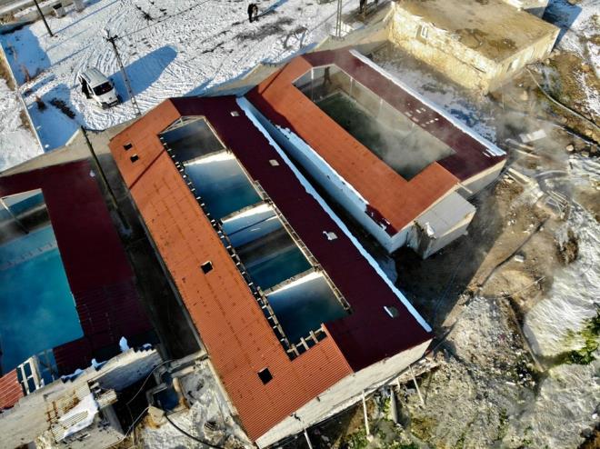 Ağrı?nın Diyadin ilçesinde bulunan ve cilt hastalıkları başta olmak üzere birçok hastalığa iyi geldiği düşünülen kaplıcalar, dondurucu soğuklarda sıcak suyuyla ziyaretçilerini ağırlıyor.