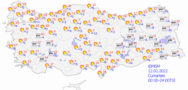 Meteoroloji Genel Müdürlüğü tarafından yapılan son değerlendirmelere göre; Ülkemiz genelinin parçalı ve çok bulutlu, Marmara, Ege, Akdeniz, İç Anadolu, Batı Karadeniz, Doğu Anadolu (Kars, Ardahan, Iğdır ve Van dışında), Güneydoğu Anadolu ile Samsun, Amasya, Tokat, Bayburt ve Çorum çevrelerinin yağışlı geçeceği tahmin ediliyor. Ege ve Akdeniz kıyıları ile Güneydoğu Anadolu?da yağmur ve Sağanak, yağış alan diğer yerlerde karla karışık yağmur ve kar şeklinde görülecek.