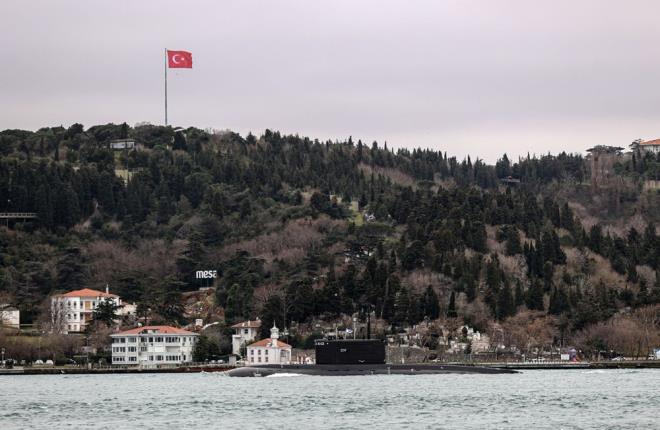 Rus donanmasına ait ?Rostov Na Donu? denizaltısı İstanbul Boğazı'ndan geçti. Karadeniz'e doğru yol alan denizaltıya sahil güvenlik eşlik etti.