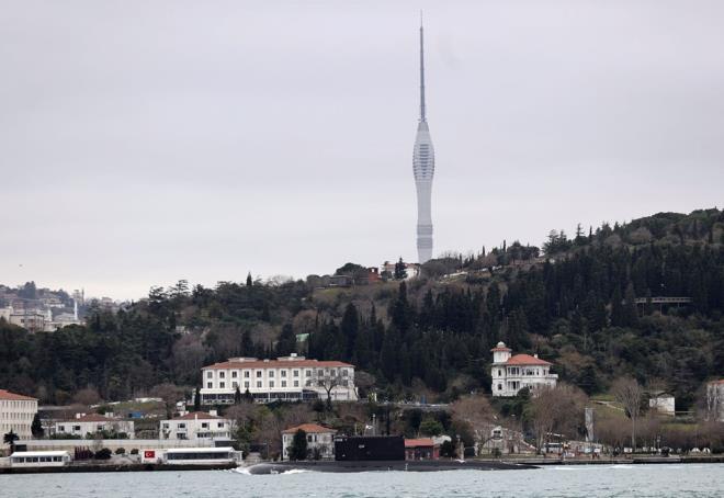 Karadeniz'e doğru yol alan denizaltının güvertesinden bazı askeri personel dışarıyı seyrederken, denizaltının boğazdan geçişi sırasında Sahil Güvenlik Komutanlığı unsurları da refakat etti.