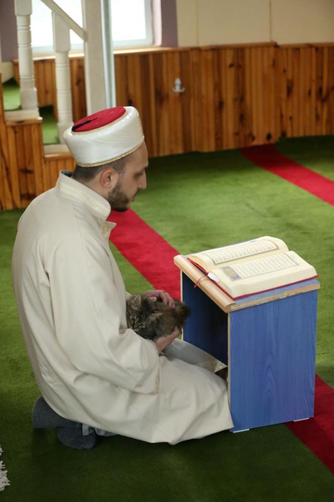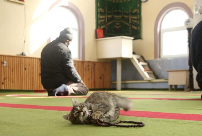 Yılmaz'ın, "Zeytin" adını verdiği kediye caminin kapılarını açması, Kur'an-ı Kerim okurken dahi ona şefkat göstermesi, görenlerin dikkatini çekiyor.