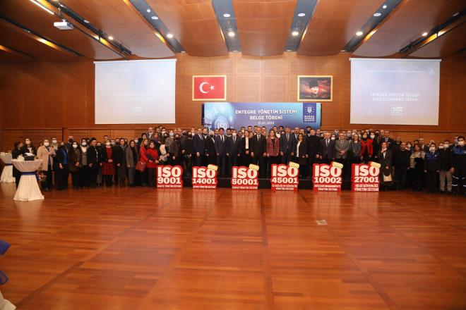 Büyükşehir Belediyesi, II. Bayezid tarafından 1502 yılında hazırlanan ve dünyanın ilk kalite standartı olma özelliği taşıyan Kanun name-i İhtisab-ı Bursa (Bursa Belediye Kanunu) ile bu işin başlangıç noktası olan Bursa'da kalite standartlarını daha da yukarıya çıkarmak için çalışmalarını sürdürüyor. Altyapıdan üst yapıya kadar birçok alanda projeler geliştirerek şehri geleceğe taşıyan Büyükşehir Belediyesi, sürekli iyileştirdiği kaynak tüketimi ve hizmet standartlarını 'Entegre Yönetim Sistemi' adı altında toplayarak belgelendirdi. Kalite Yönetim Sistemi (ISO-9001), Çevre Yönetim Sistemi (ISO-14001), İş Sağlığı ve Güvenliği Yönetim Sistemi (ISO-45001), Enerji Yönetim Sistemi (ISO-50001), Müşteri Memnuniyeti Yönetim Sistemi (ISO 10002) ve Bilgi Güvenliği Yönetim Sistemi (ISO-27001) belgelerine sahip olan Büyükşehir Belediyesi, Türkiye?de 6 yönetim sistemini entegre şekilde kullanan ilk ve tek Büyükşehir Belediyesi olmayı başardı.