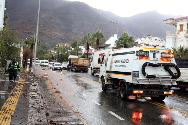 "HASAR TESPİT ÇALIŞMALARI SÜRÜYOR" Marmaris Belediye Başkanı Mehmet Oktay, yaşanan selin ardından yaptığı yazılı açıklamada, "Mesai arkadaşlarımızla birlikte sağanağın ilk başladığı sabah saatlerinden itibaren sahada tedbirlerimizi aldık. İş makineleriyle dağlardan gelen çamurlar, kesilmiş ağaç dalları ve çeşitli atıklarla tıkanan dereler temizlendi. İtfaiye ekiplerimiz su taşkınları olan alanlarda tahliye işlemi yapıyor. Temizlik ve onarım çalışmalarımız hızlı şekilde devam etmektedir. Hasar tespit çalışmaları sürüyor" dedi.