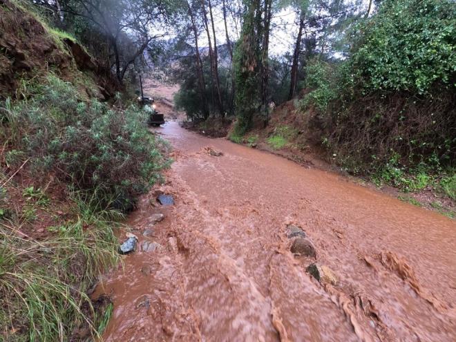 Zaman zaman etkisini artıran sağanak yağmur nedeniyle İçmeler Mahallesi'nde yazın yanan ormanlık alanların çıplak dağ eteklerinden inen çamurlu su ile dereler taştı.