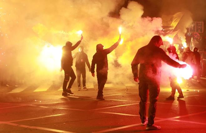 Belgrad'da bir araya gelen aşırı sağcı "Halkın Devriyeleri" adlı grubun destekçileri, Rusya'ya destek sloganları attı.
