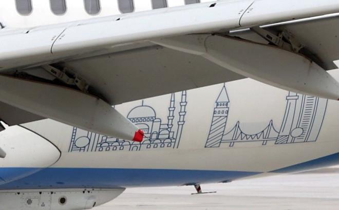 UÇAKTA DİKKAT ÇEKEN AYRINTILAR Uçağın kuyruk kısmında Galata Kulesi, Boğaz Köprüsü ve Ayasofya Camii'yi yansıtan bir kompozisyon yer aldı.