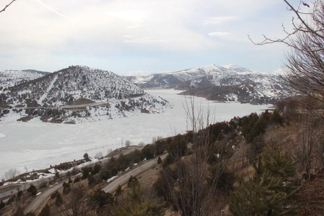 Sivas?ta sert geçen kış mevsiminde donan Pusat Özen Baraj Gölü, Nisan ayı gelmesine rağmen halen çözülmedi.