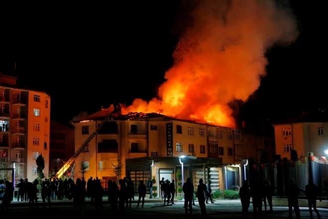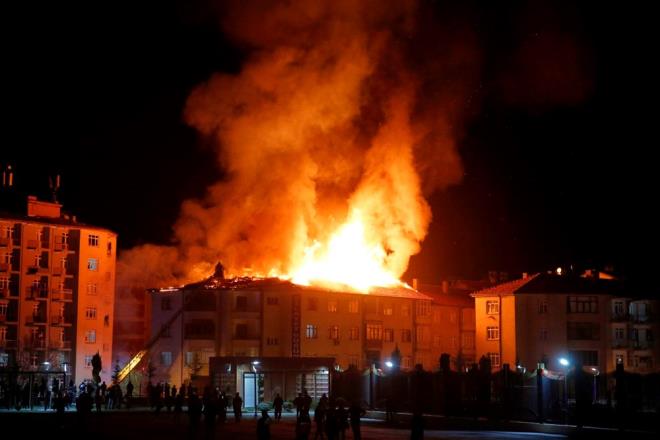 Elazığ?da 5 katlı bir binanın çatı katında yangın çıktı. Bitişikteki 2 binanın daha çatısına sıçrayan alevler kentin birçok noktasından görüldü. Binada bulunanlar tahliye edilirken, yangın ekiplerin müdahalesiyle söndürüldü.