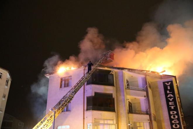 Elazığ'da, 5 katlı binanın çatısında yangın çıktı.