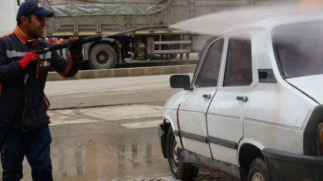 "SABAH 50 ARAÇ YIKADIK" Sabah saatlerinde araçlardaki çamuru fark ettiğini ifade eden oto yıkamacı vatandaş, sabah 08.00 sıralarından bu yana durmadan araç yıkadığını belirtti. Oto yıkamacı, şu ana kadar yaklaşık 50 araç yıkadığını ve akşama kadar bu sayının artacağını kaydetti