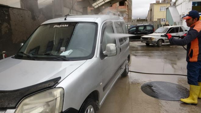 Van?da Meteoroloji?nin Suriye kaynaklı toz taşınımı uyarısının ardından sabah saatlerinde aracını çamur içinde gören vatandaşlar, oto yıkamacılarda yoğunluk oluşturdu.