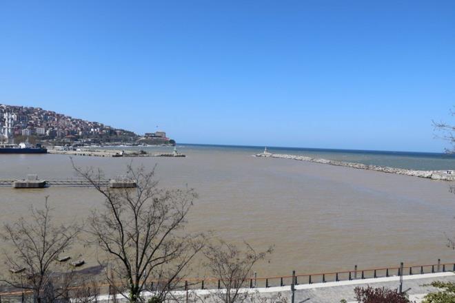 Derelerden denize taşınan sel sularıyla birlikte denizin bir bölümü, limanın içi ve kıyı şeridi çamur rengini aldı.