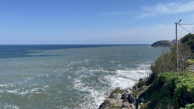 Sahilde yürüyüş yapan bazı vatandaşlar da bir kısmı çamur rengine dönüşen denizi izledi.
