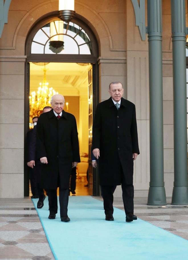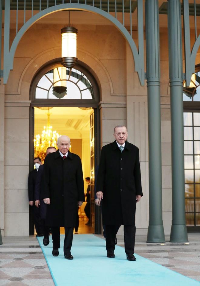 Erdoğan-Bahçeli buluşmasında Rusya-Ukrayna savaşı, ile ekonomdeki son gelişmelerin masaya yatırıldığı tahmin ediliyor. Aynı zamanda Bahçeli'nin Suriyelilere sığınmacılara yönelijk dönük mesajlarının da ele alındığı belirtiliyor.