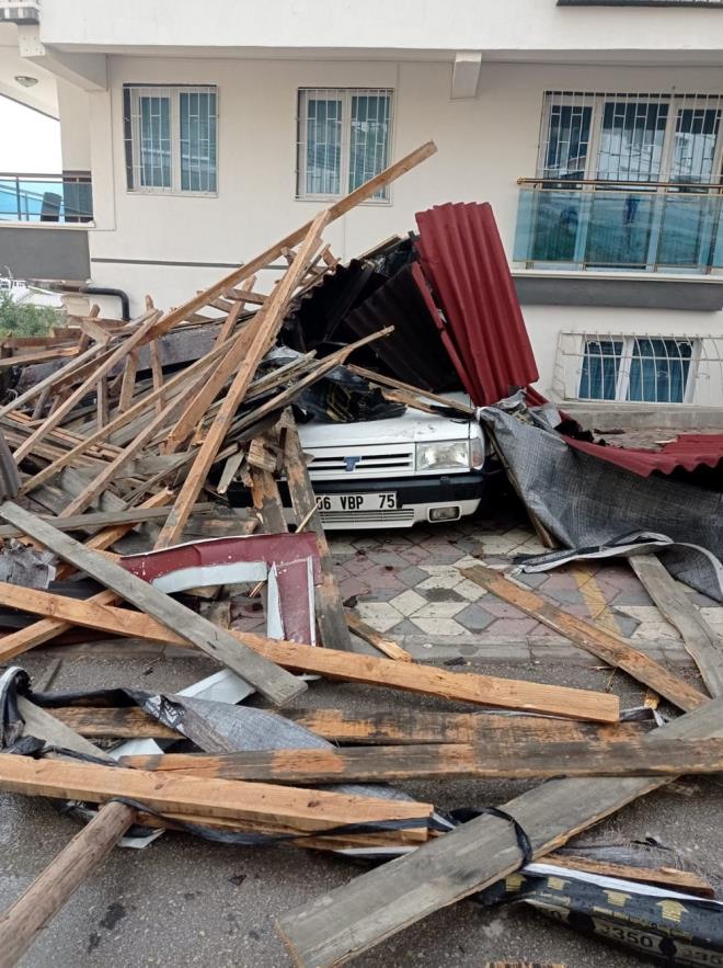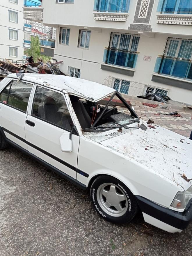 Ankara?da sağanak ve fırtınada uçan bir binanın çatısı park halindeki araçların üzerine düşerek maddi hasara yol açtı.