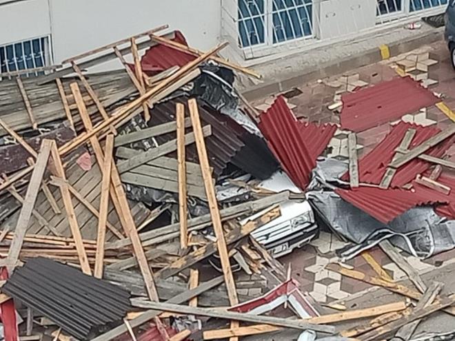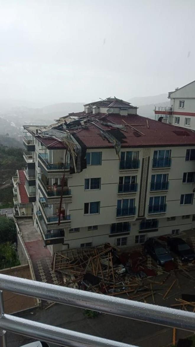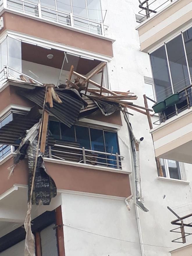 Kopan çatı parçaları, park halindeki araçların ve bazı dairelerin balkonuna düştü.