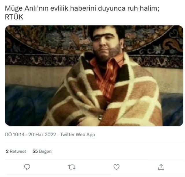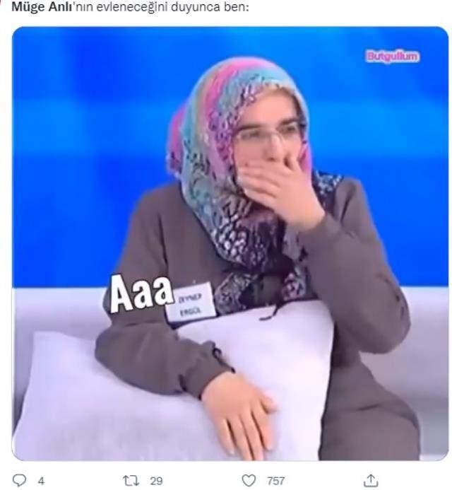 TWITTER'DA GÜNDEM OLDU Anlı'nın evleneceği haberi Twitter'da gündem olurken sosyal medya kullanıcıları tarafından yapılan esprili paylaşımlar, görenleri güldürdü. İşte Müge Anlı'nın gündem olan evliliği ile ilgili yapılan paylaşımlar: