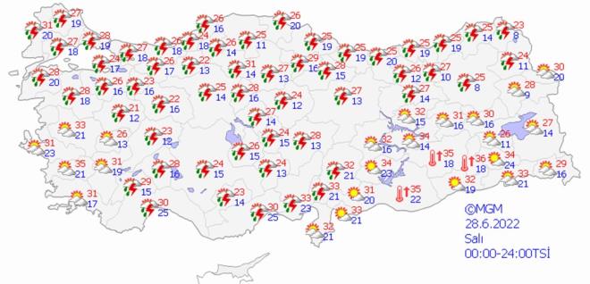 Meteoroloji'den yapılan 24 Haziran 2022 Cuma günü için yapılan son hava durumu tahminleri şu şekilde: