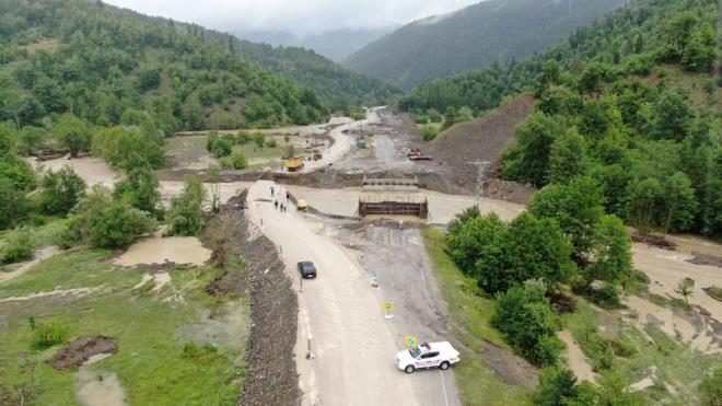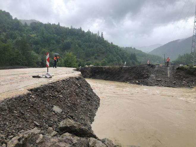 Kastamonu'da şiddetli yağmur nedeniyle Sada Çayı taştı, köprü çökmesi sonucu iki ilçeye ulaşım kesildi.