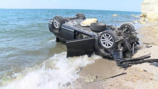 Deniz kıyısına düşüp ters dönen ve kullanılamaz hale gelen otomobili, olay yerine gelen itfaiye ekipleri buradan kaldırmak istedi.