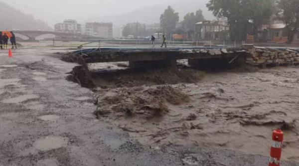 Afet ve Durum Yönetimi Başkanlığı (AFAD) ile Meteoroloji Genel Müdürlüğü tarafından kırmızı kod uyarısı yapılan Zonguldak, Bartın, Kastamonu, Karabük ve Sinop'ta alarm verildi. Kastamonu'nun İnebolu ilçesinde taşan sel suları 2 köprüyü yıktı, bazı köprüler yıkılma tehlikesiyle karşı karşıya! İçişleri Bakanlığı emriyle İnebolu'da dükkanlar açılmadı. Şehircilik Bakanı Murat Kurum, "Önümüzdeki saatler kritik! Lütfen her zamankinden daha dikkatli olalım" dedi. Öte yandan AFAD'dan yapılan açıklamada Batı Karadeniz'deki 15 ilçe için taşkın riskinin tehlikeli boyutlara ulaştığı bildirildi. 15 ilçe merkezi için sel baskını alarmı verildi. İşte Karadeniz'deki sağanaklarla ilgili son gelişmeler...