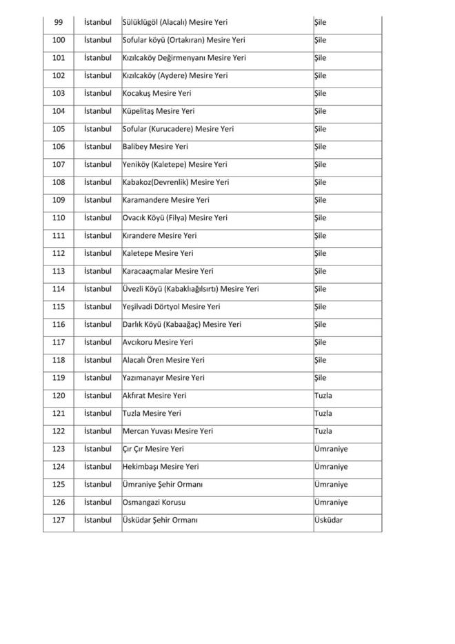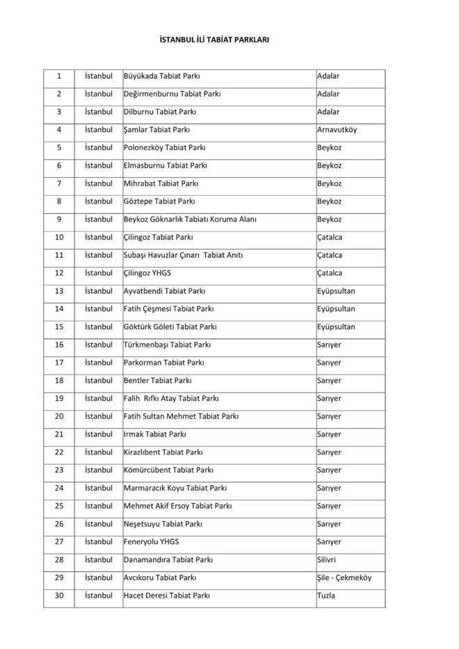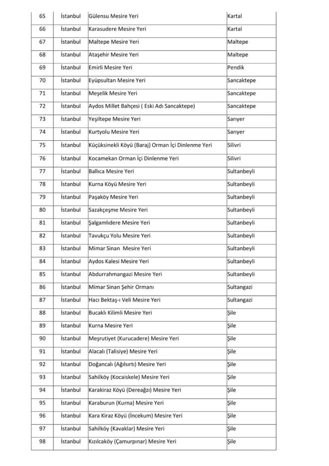 Alınan karara göre İstanbul İl sınırları dahilinde yer alan piknik ve mesire alanları, tabiat parkları, korular, parklar ve ekoturizm alanlarında ateşsiz piknik yapmak, spor, yürüyüş vb. faaliyetlerde bulunmak serbest. Ancak bu alanlarda mangal yapmak, tüp kullanmak, nargile ve her türlü ateş yakmak yasaklandı. İşte İstanbul'da yasak getirilen bölgeler...