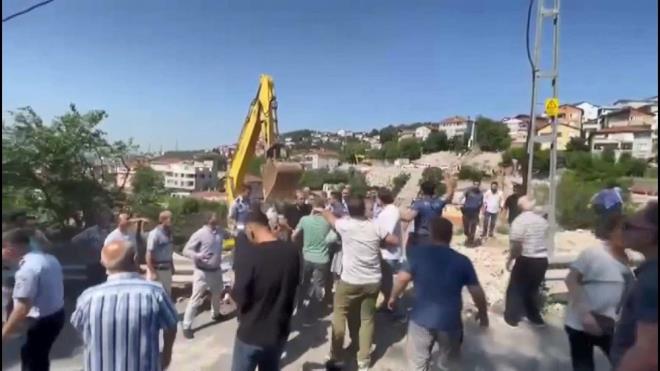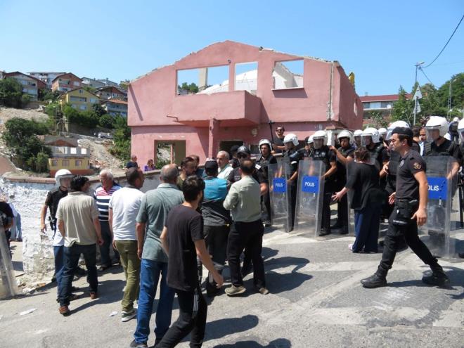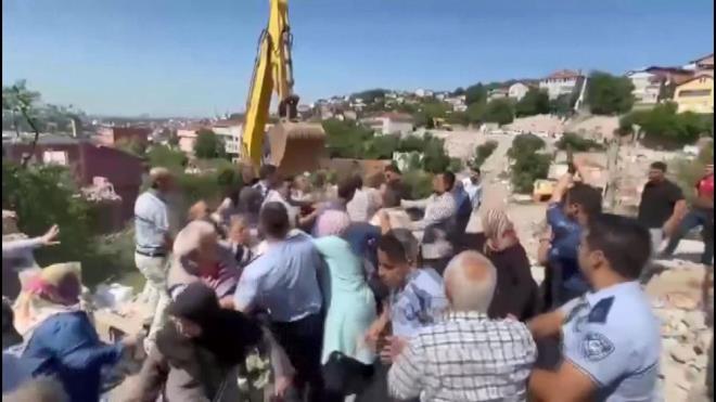 YIKIM GERÇEKLEŞTİRİLDİ Çıkan arbede sırasında bir kadın baygınlık geçirdi. Çevik kuvvet ekiplerinin aldığı güvenlik önlemi sonrasında yıkım gerçekleştirildi.