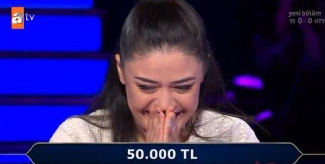 Hedefine bir adım daha yaklaştığı için mutlu olan yarışmacı, soruyu bildikten sonra gözyaşlarına hakim olamadı.