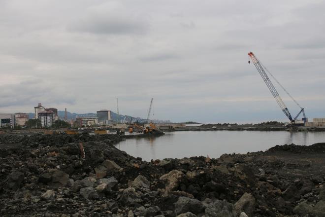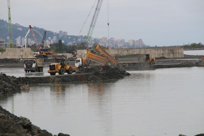 Rize?de, 350 bin metrekare alanda 8 milyon ton taş kullanılıp, deniz doldurularak yapılacak Şehir Hastanesi dolgusunun yüzde 73'ü, tamamlandı.