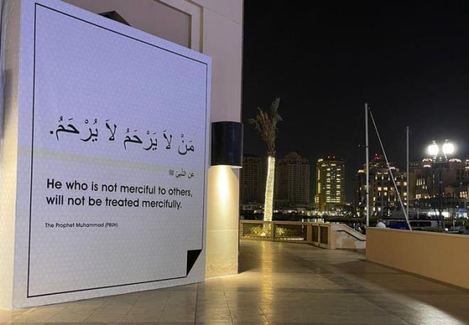 Katar'ın turistik ve ticari merkezlerinden İnci Adası'ndaki çeşitli noktalarda bulunan panolara hadisi şerifler ve İngilizce çevirileri asıldı.