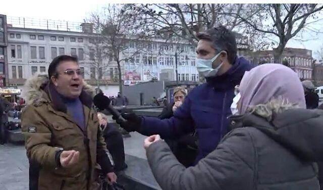 Sokak röportajları yapan eski oyuncu, vatandaşa gündemle ilgili sorular yöneltiyor.