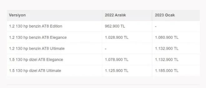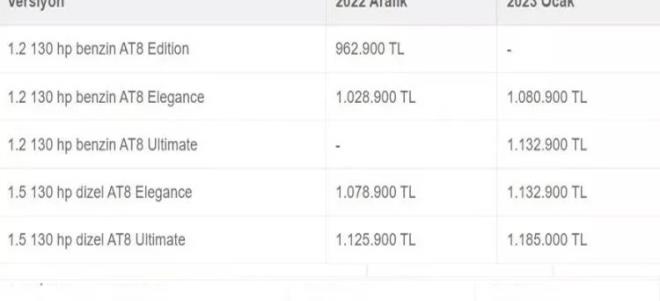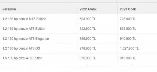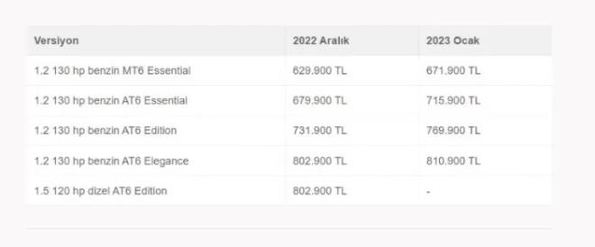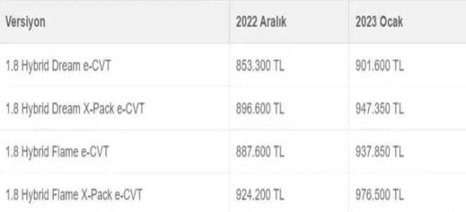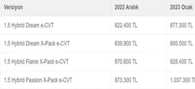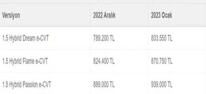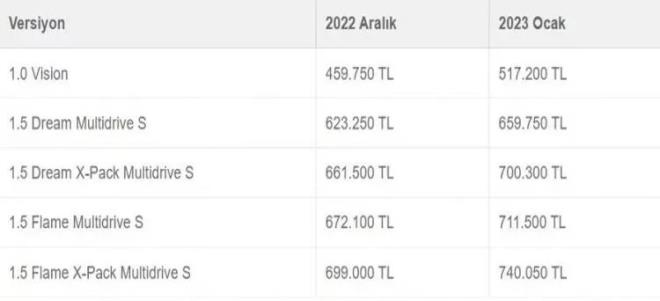 İşte 2023 sıfır otomobil zamlı fiyat listesi!